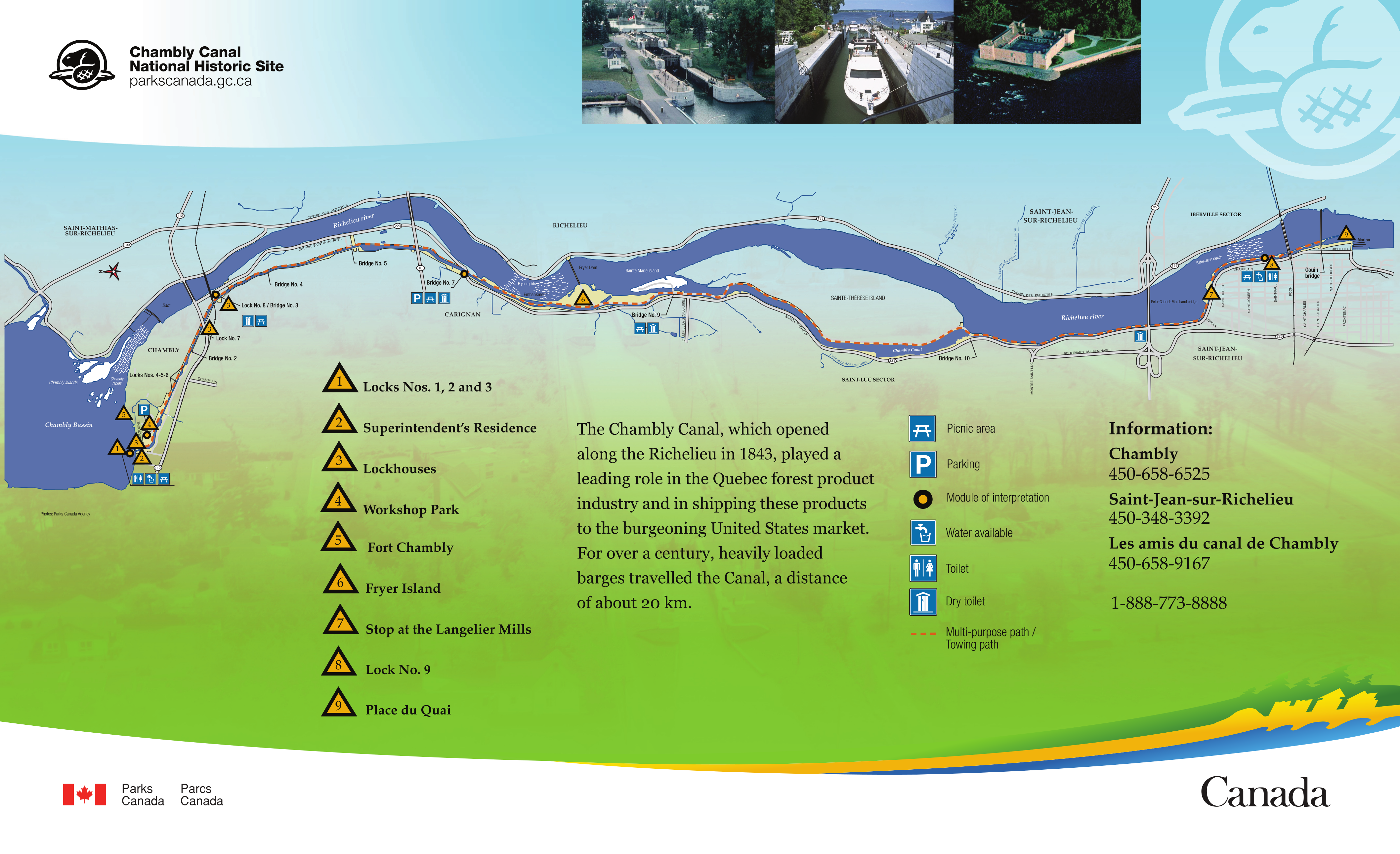 The South Shore Canal includes the Saint Lambert Lock, Saint Catherine Lock and 20 miles of embankments providing navigable depths. Each lock is 766x80ft and accommodates ships up to 740ft length and 78ft beam.